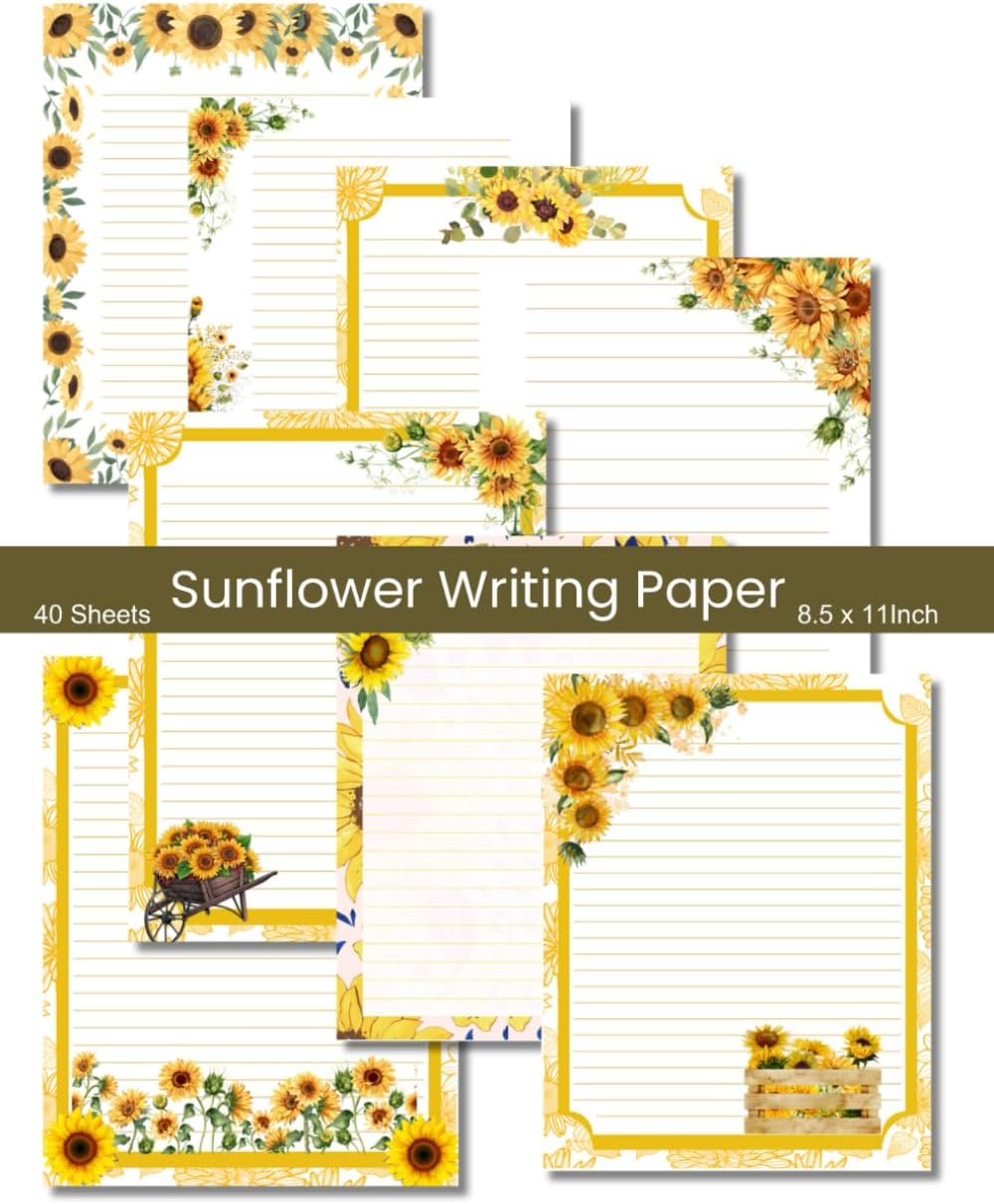 40 Sheets Sunflower Writing Paper: Stationery Letterhead Stylish Paper, Personalised Invitations, Watercolor Floral Unique Notes: Running Daily Supplies, 8 Designs, 8.5 x 11 Inch