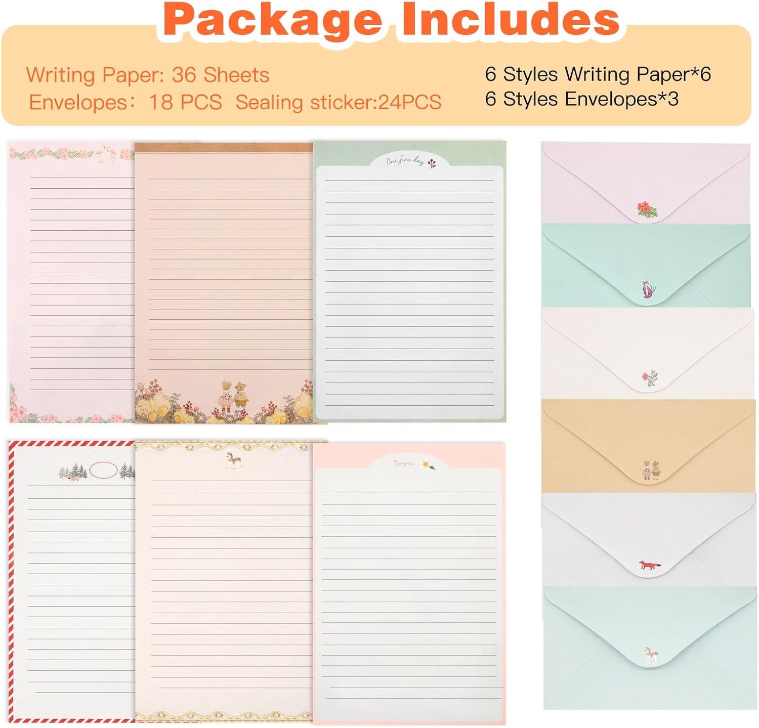 54 PCS Stationery Set with Envelopes,36 Writing Paper+18 Envelopes,Cute Lined Stationery Paper for Writing Letters Invitations Poem Office School Supplies